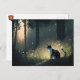 Send your friends and loved ones a black and white cat enjoying the solitude of a forest at dusk while surrounded by fireflies.