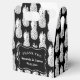 Black and white vintage pineapple wedding party favour box with name and date of marriage. Add your own custom thank you message and name or monogram letters of bride & groom . Cute tropical fruit pattern print with classy label on the front for newly weds couple. Customisable background colour. Great for beach destination theme wedding celebration in exotic location near the sea or ocean. Fruity pattern design for thanking guests for coming. Luxury give away for guests, friends and family. Also nice for bridesmaids and groomsmen. Elegant typography template. Personalised boxes printed with pretty artwork. Add your own contents like souvenirs, candy, dried fruit, homemade food, toy, chocolate, cookies, m&m's, jelly beans, truffles, nuts, small drinks, gift item, etc. Trendy party supplies and accessories for your venue. Also nice for bridal shower, engagement, birthday, baby shower, business or anniversary. Change quantity to get the cheap bulk price.