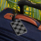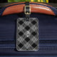 Black and white diagonal plaid luggage tag with monogrammed initial.