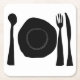 Black and White Plate and Utensils Square Paper Coaster