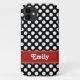 This custom black and white polka dot design with a multi dot pattern can be personalised with your name on the red stitched ribbon design. This makes a cute and stylish gift for women, a teen or any girly girl. Artwork © Chrissy H. Studios, LLC. All Rights Reserved.
