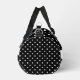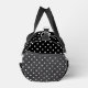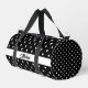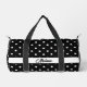 Dive into the playful elegance of the "Black and White Polka Dot Name Pattern Pretty Duffle Bag." This delightful piece marries the timeless charm of polka dots with a personalised touch, making it an ideal accessory for those who adore a blend of classic style and individual expression. The bag features an enchanting pattern of crisp white polka dots set against a deep black background, creating a striking contrast that’s both chic and eye-catching.