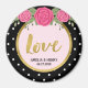 This round Wedding Love magnet features a faux gold border, black and white polka dots, and the word "Love" in script. These magnets are a great way for guests to remember your special date. Check out other matching Wedding/Bridal items in my store here -> http://www.zazzle.com/collections/chic_black_and_white_with_pink_roses-119742500167731763?rf=238364477188679314