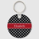Black and White Polka Dots Cranberry Name Monogram Key Ring