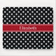 Black and White Polka Dots Cranberry Name Monogram Mouse Pad