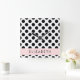 Black and White Polka Dots, Dotted, Your Name Square Wall Clock