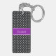 Black and White Polka Dots Purple Name Monogram Key Ring