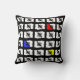 Black and White Primary Colours Geo Sketch Squares Cushion