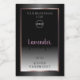 Make a lasting impression with this elegant and modern product label design featuring a black and white colour gradient with a luminous shimmery purple decor frame. Matching an outstanding font with shadow effect.