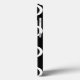 A Tough Xtreme iPhone 6 case with a black and white quatrefoil pattern and a black monogram on a single white quatrefoil in the centre.