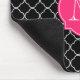 A black and white quatrefoil pattern has a hot pink single quatrefoil monogram frame to customise with your initial.