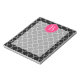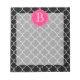 A black and white quatrefoil pattern has a hot pink single quatrefoil monogram frame to customise with your initial.