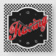 A great gift for any racing enthusiast or a fantastic addition to your barroom, clubroom or gameroom, our square clock design features a black and white chequered pattern with the word "Racing" diagonally in a scripted red, black and white font on a black and white custom emblem. The clock is topped off with white numerals.