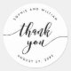 Versatile Thank You sticker featuring the words "Thank You" in a relax cursive script in black against a white background that is perfect for weddings or various events like bridal showers, baby showers, etc.