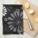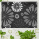 Black and White Retro Floral Tea Towel