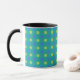A chic black and white Ringer Mug with a Polka Dot Blue Moons pattern in Neon Green and Dazzling Blue on an Emerald Green background. Part of the Posh & Painterly 'Blue Moons' collection.