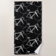 A modern, black and white Beach Towel, with a digital pattern illustration of a road racing bicycle. Visit our store for more sporty gifts.