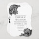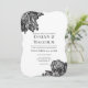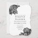 This wedding invitation features bold illustrations of roses in an antique engraving style in black and white set against a plain white background. Your details appear in bold black print lettering. The reverse side has a coordinating bouquet of black and white roses that's ready to be customised with the monogram initials of the bride and groom.