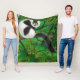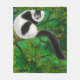 Original fine art design of an elegant black and white Ruffed Lemur from Madagascar by artist and designer Carolyn McFann of Two Purring Cats Studio printed on a quality fleece blanket for all who love primates, especially lemurs and sifakas.