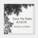 A classy design featuring a white background with black branches and leaves on the top and corner. Customise with names and date as desired.