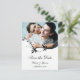 Elegant save the date photo cards, with a chic black and white floral scroll design to frame your photo. Add your own photo and wedding info.