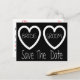 Proudly tell your friends and family your engaged with these fun Save the Date wedding announcement postcards. These sweet black and white postcards feature a pair of white bride and groom hearts highlighted against an onyx black background. The back of the postcard can be fully customised with your names, and wedding date information.