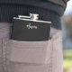The flask itself is fine. It’s a cheap flask, obviously bought in bulk, however am prepared to overlook that. Given that it is a personalized item, I would have liked to have seen gift boxing instead of the generic packaging. Terrible printing, and/or quality. It’s a cheap, tacky vinyl. It is not cut straight and is also applied in a way that it is overhanging the bottom, causing the glue to catch on items and it will eventually roll and tear, damaging the wrap.