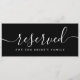 This elegant black and white script reserved sign for chairs is perfect for your wedding celebration. Designed by Thisisnotme©