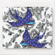 black and white scroll swallows mouse pad