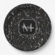 Black and white shiny glitter sparkles Monogram Paper Plate