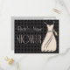 White wedding dress with black and white art deco background - easily customise with bride's name on the front. Add details on the back. Quick and easy bridal postcard.