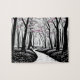 Black and White Silhouette Forest of Purple Leaves Jigsaw Puzzle