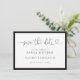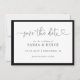A simple elegant wedding save the date design in black and white with calligraphy text that has a heart swash at the end of the text. The text template includes a classic type face that is both simple and sophisticated. An elegant black border frames the text in modern classic style. Personalise with your details.