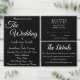Simple style wedding rehearsal dinner invitations that feature white, stylised lettering on a solid black colour background. Edit your invitations by replacing names, date/time, location, and contact info with your own. Select your invitation size and paper style.