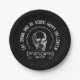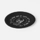 Custom printed Halloween party paper plates to match our Vintage Skull collection. Personalise it with your family name, party details or other custom text around a distressed vintage skull illustration and scroll ornament on a black background. Use the design tools to edit the text fonts and colours and add your own photos and text to create your own unique Halloween party decor.