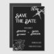 Black and White Skull Tattoo Wedding Save the Date. Black and white magnetic wedding save the date with skull and tattoo machine or tattoo gun.