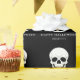 White skulls pattern on a black background colour with two personalizable text areas. The top reads “Happy Halloween” while the second lets you add a name or short message. A fun way to wrap Halloween gifts, party favours or treat bags with a simple spooky style.