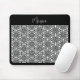 Black and white elegance, Snowflake Flower Pattern with a black frame that makes it possible to personalise the mouse pad with a name. Thanks to the easy-to-use text template function you can add your own name (or text) instead of the name shown in the example.