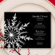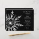 Customise the festive Black and White Snowflake Winter Wedding Menu with the details of the meal that you will serve at your December, January or February winter wonderland theme bridal shower luncheon, marriage reception dinner or post wedding brunch by adding the salad or first course, entree or second course and dessert or third course. Personalise it with the names of the bride and groom, venue location and event date. This elegant custom wintery wedding menu features a white intricate snowflake adorning the corner with a black background.