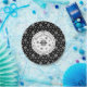Destei's white snowflake pattern on a black background color sets the base for this modern Holiday design. In the middle there is a white circle filled with black snowflakes and two personalizable text areas ideal for writing a festive message such as "Merry Christmas" together with a custom party theme or name. Feel free to change the colors to your liking.