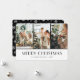 Modern black and white photo Christmas card featuring a photo collage on the front and a holiday pattern of snowflakes at the back. Easily personalize this elegant holiday card with your favorite photos and text.