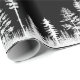 A modern, traditional and classic black and white aesthetic pattern of a snowy white winter woodland forest covered in white snow on a black background.