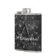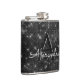 Black and White Trendy Sparkle Elegant Monogram Flask. This Flask can be customised to include your initial and first name. The Black and White Flask is perfect for a birthday or bachelorette party celebration.