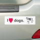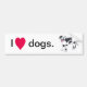Painting of a white dog with black spots, with its mouth open and tongue hanging out, with I heart dogs, printed on bumper stickers.
