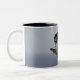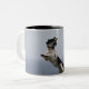 black and white Springer Spaniel playing with Two-Tone Coffee Mug