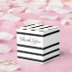 Designer wedding favour guest box in a bold black and white stripe print, the colours can be changed to any colour to coordinate with your special event theme. Text on front, back, and top can be personalised to any message.