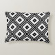 This decorative accent pillow features a contemporary retro abstract pattern of nested black and white diamond squares.