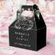 An elegant black and white wedding favour box featuring string lights and hand-drawn floral foliage. You can personalise with your own thank you message on the reverse. A perfect way to say thank you to your guests! Designed by Thisisnotme©