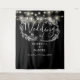 This stylish string lights floral wedding photo booth backdrop can be personalised with your names and special date on a black background. Designed by Thisisnotme©