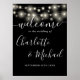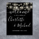 Featuring pretty string lights and signature style names, this elegant black and white welcome sign can be personalized with your information in chic lettering. Designed by Thisisnotme©